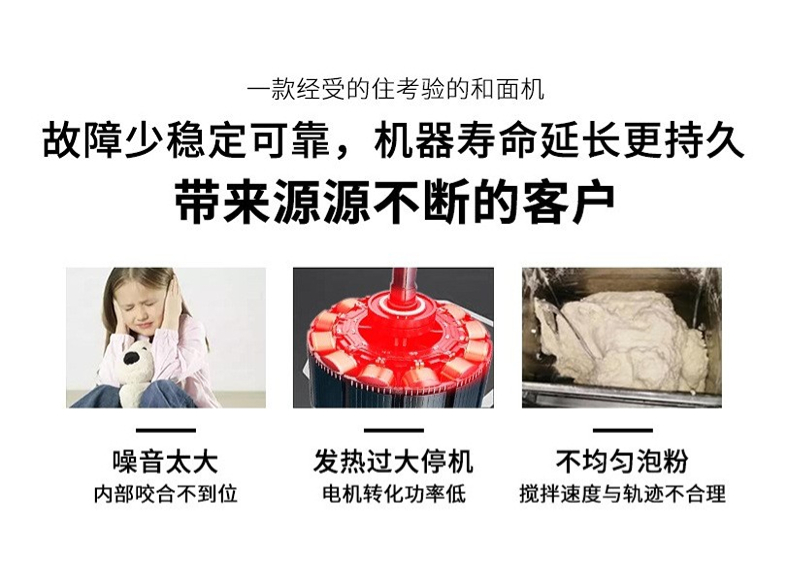 ◇使得蛋白組織結(jié)構(gòu)均衡,使面的筋性、咬勁、拉力都遠(yuǎn)遠(yuǎn)優(yōu)于其他形式和面機(jī)的和面效果。